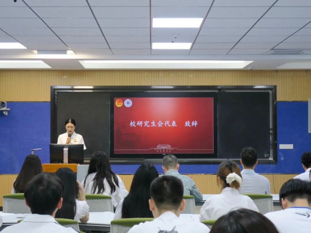 大会在庄严的国歌声中拉开序幕。会上,院研究生代表张景明致开幕词。曾艺云代表校研究生会致辞。