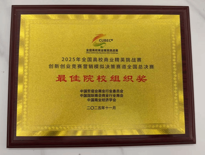 11月29日至30日,2025年全国高校商业精英挑战赛营销模拟决策全国精英赛在山东泰安圆满落幕。本届大赛吸引了全国近400所院校4000余支团队参与,近1200余支团队晋级全国总决赛,经全国总决赛选拔后进入线下精英赛。我院学子表现优异,在激烈角逐中脱颖而出,斩获国家级一等奖2项、国家级二等奖5项。与此同时,我校因组织工作严谨有序、保障有力,荣获“最佳院校组织奖”。