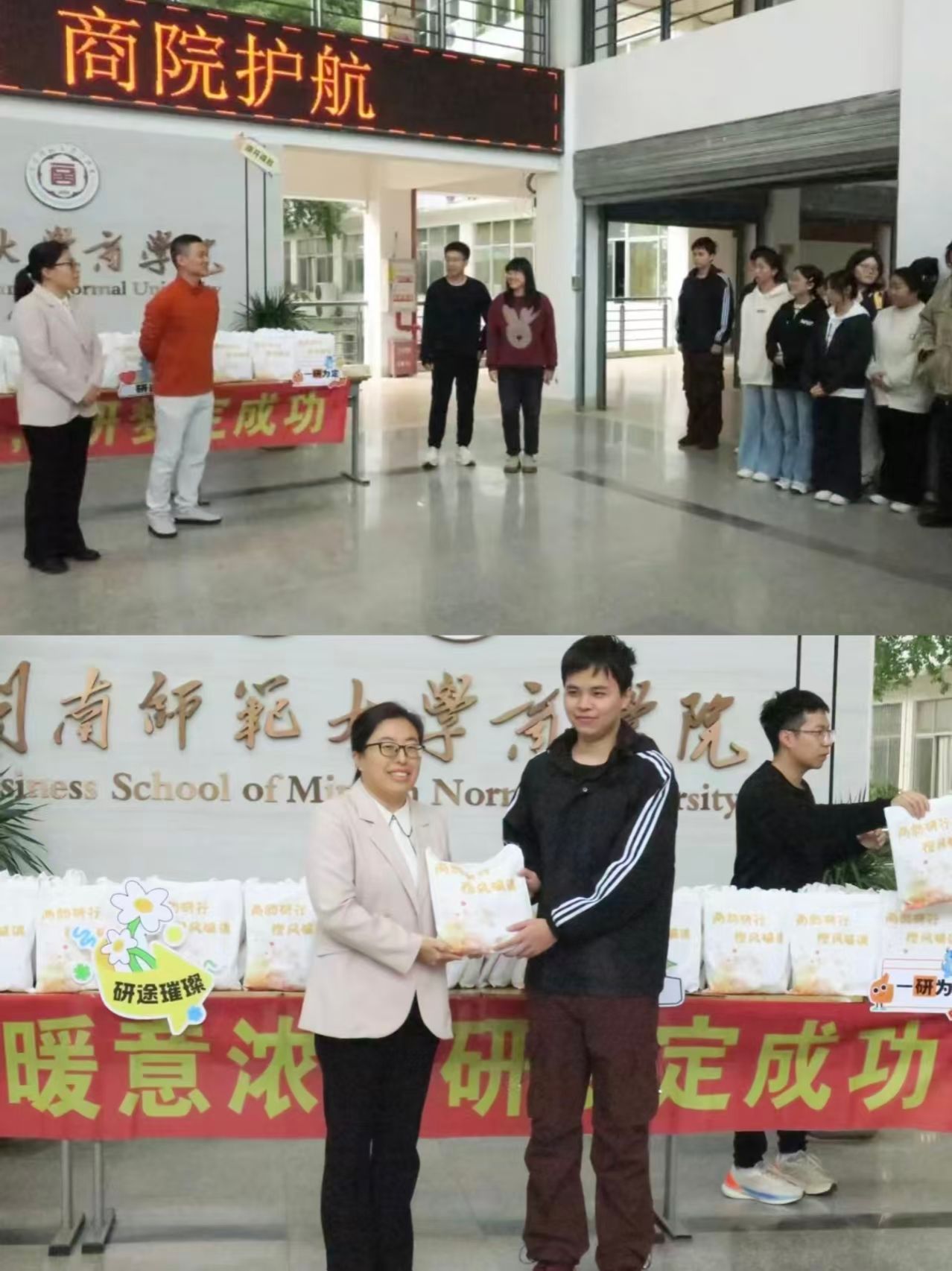 礼轻情意重,关怀暖人心。此次活动不仅体现了商学院对学子成长全程的关爱与支持,也进一步增强了同学们的归属感和奋进动力。愿商学院2026届考研学子笔锋所至,心之所向,在考场上绽放光彩,收获理想佳绩!