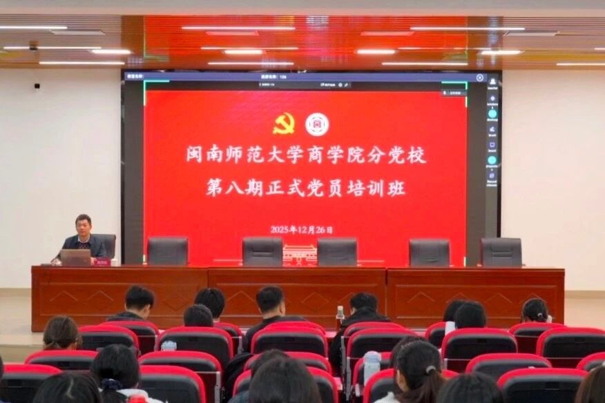 为深入学习贯彻习近平新时代中国特色社会主义思想和党的二十届四中全会精神,牢牢把握“以全面从严治党为根本保障”的核心要求,同时扎实推动中央八项规定精神常态化长效化落实、纵深推进作风建设,12月26日,商学院分党校举办第八期正式党员培训班,全体党员参加学习。