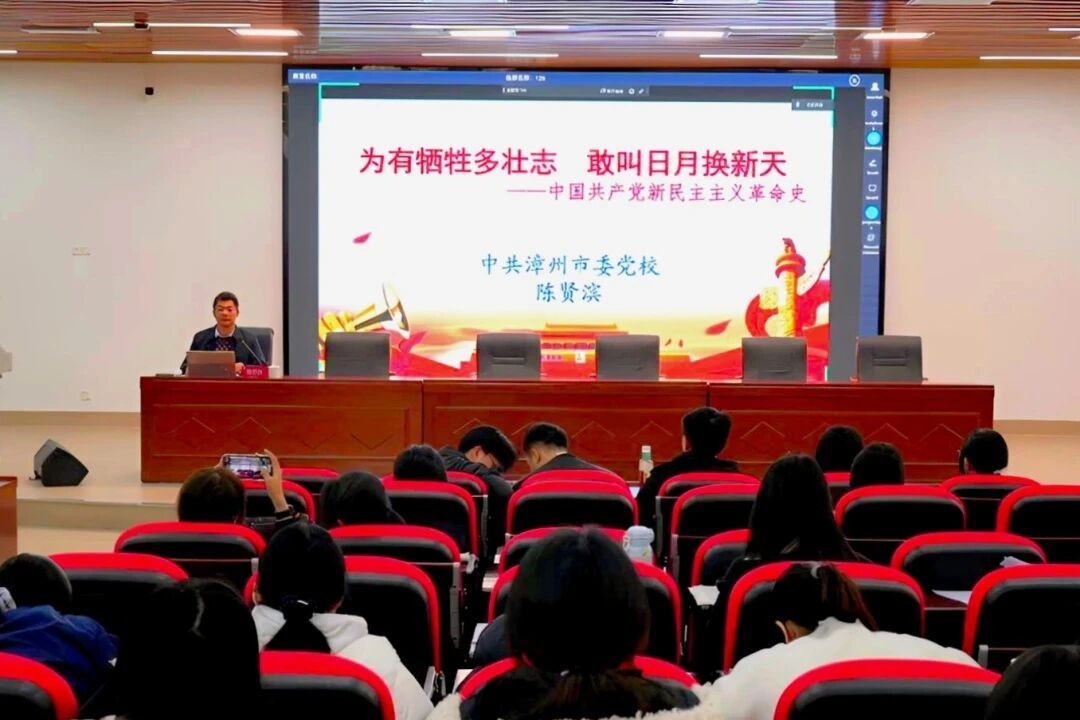 中共漳州市委党校哲学法学教研室主任、副教授陈贤滨则以《为有牺牲多壮志,敢教日月换新天——中国共产党新民主主义革命史》为题授课。他通过鲜活的历史案例、生动的史实讲述,带领党员回溯党领导人民开展艰苦卓绝革命斗争的辉煌历程,深刻阐释了革命先辈们坚守崇高理想、勇于牺牲奉献的精神内核,激励大家从党史中汲取智慧与力量,传承红色基因、筑牢信仰之基。