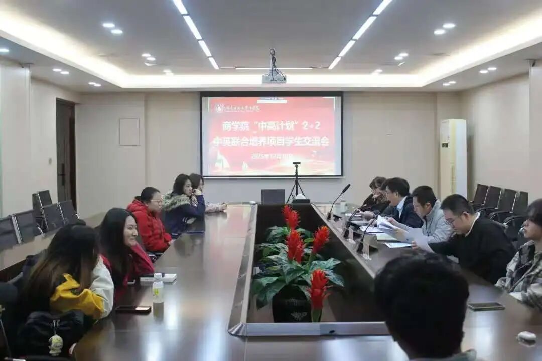 为了深化中英联合培养项目合作,助力学生成长成才,12月30日,商学院举办经济学“中高计划”2+2中英联合培养项目学生线上线下交流会,副院长何圣财、院长助理陈加民、经济与贸易系主任沈华福、教务科与相关辅导员老师、全体2+2项目学生参与交流。
