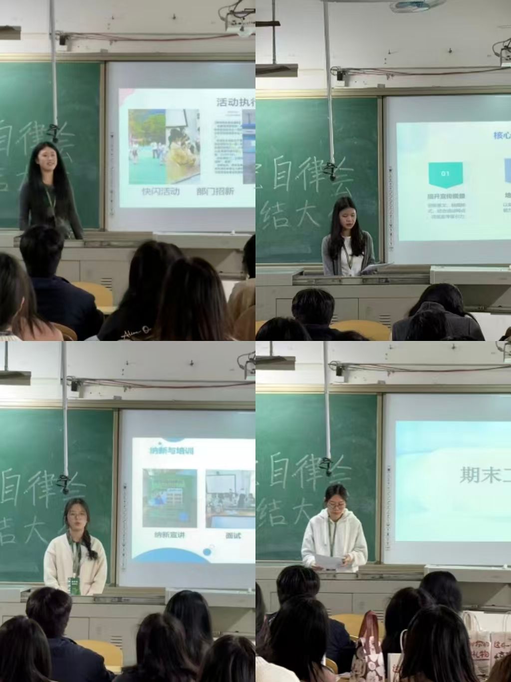 最后,自律会负责人代表进行总结发言。既肯定全体成员在宿舍管理等方面取得的亮眼成绩,也客观分析了工作中的不足,并鼓励全体成员以更饱满的热情投入后续工作。