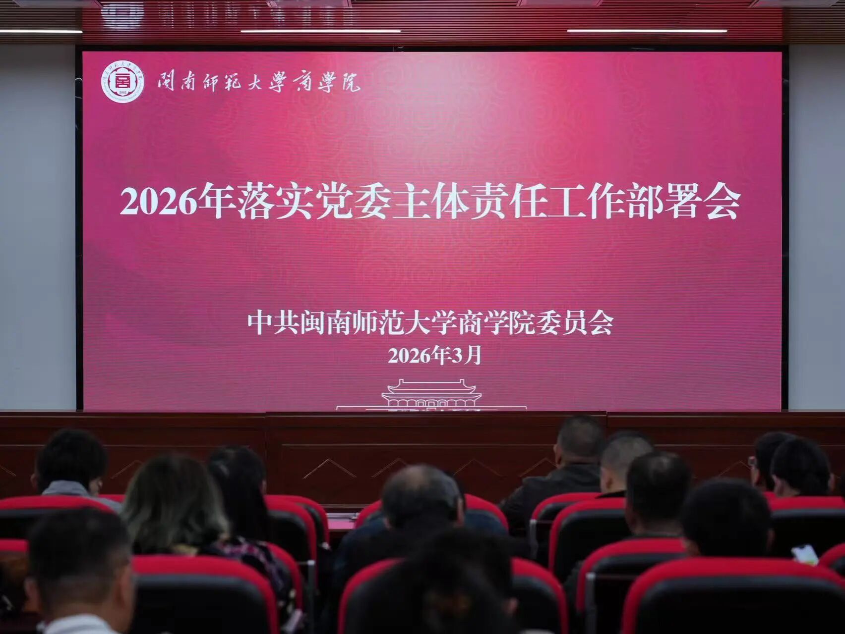 3月19日,商学院召开2026年落实党委主体责任工作部署会,深入学习贯彻上级和学校党委相关会议精神,系统部署学院党建和事业发展重点工作。会议由院党委副书记(主持党委工作)谢斌斌主持,学院领导班子成员及全体教职工参加会议。