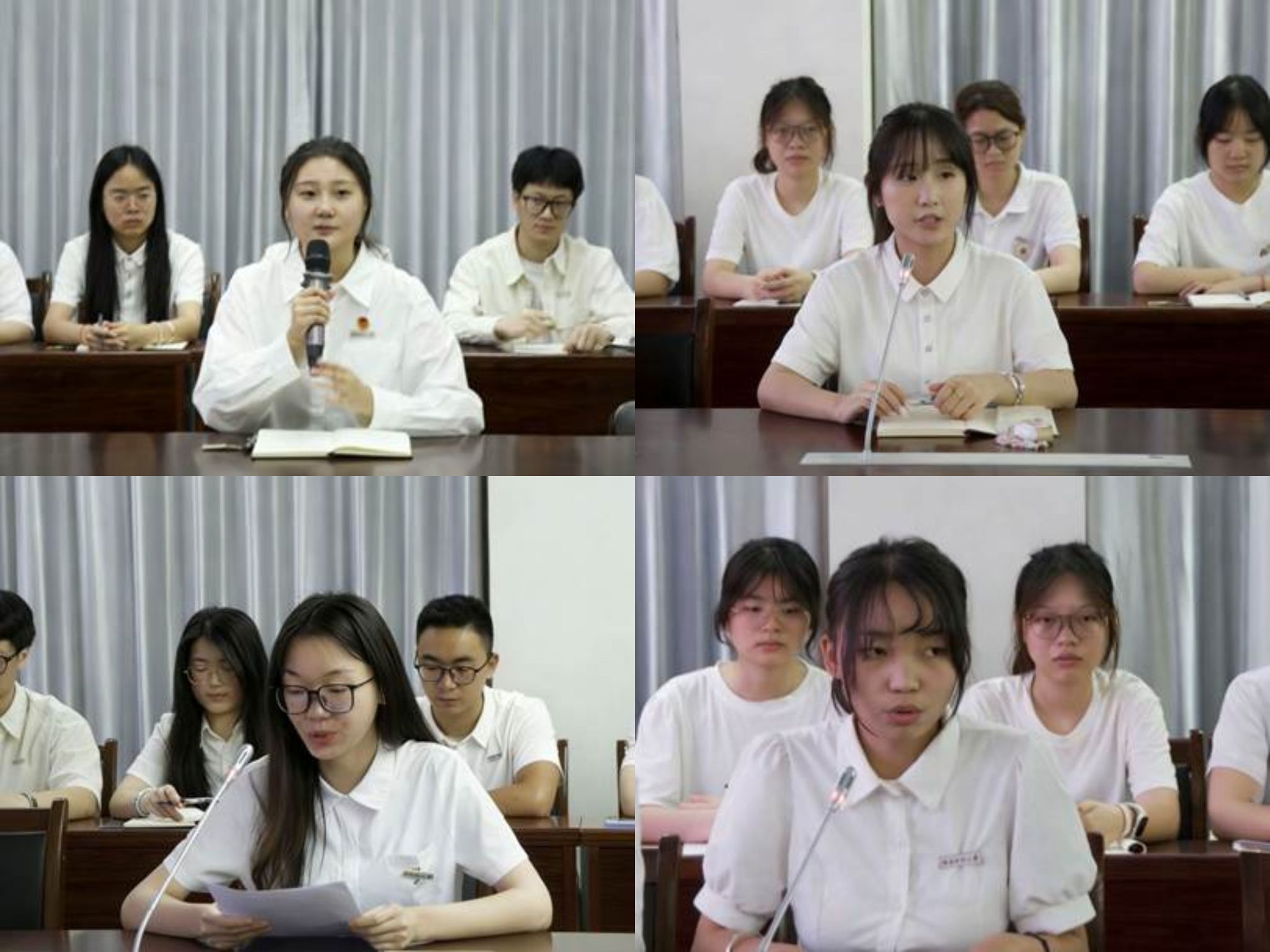 随后,各学生组织代表依次发言,围绕思想学习、工作实践、服务同学等方面进行总结汇报、交流心得。