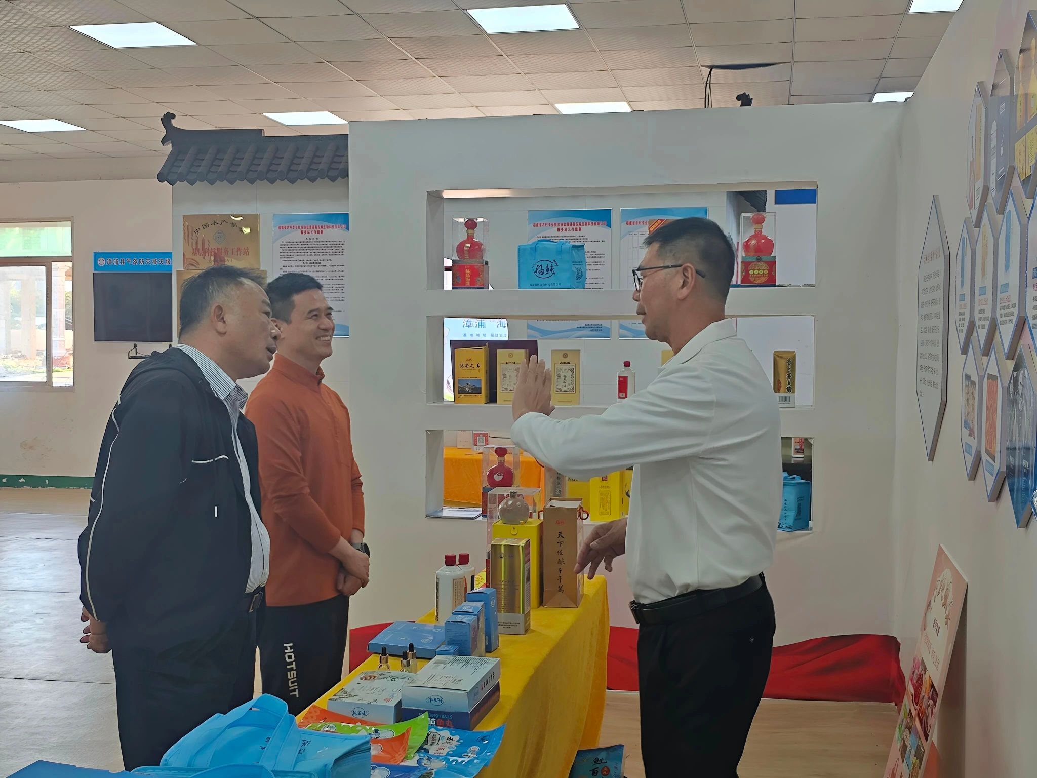 在漳浦河鲀美食文化一条街,学院一行重点考察佛昙伴手礼体验馆,该馆以 “四合一” 模式整合特产展销、直播带货、人才孵化等功能,是河鲀产业新零售示范点。学院一行详细了解共享直播间运营、电商人才培育等情况,并与佛昙镇的巾帼女团成员进行交流,该团队负责佛昙镇产品电商运营,其短视频累计近百万播放量的传播成效,为学院电子商务、市场营销专业实践教学提供了鲜活范例。